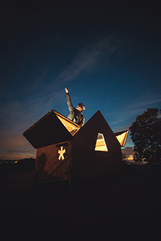 - הגג שנפתח ומאפשר לכם לשכב במיטה נוחה, עם כוס יין של ננה ביד, ולצפות במיליוני כוכבים