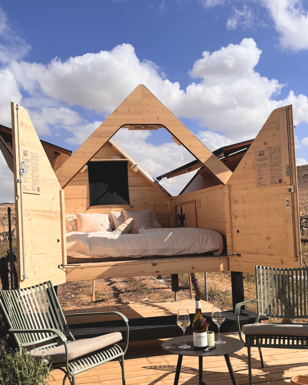 הסיפור של Starsbox נולד באיטליה, כקונספט שבוחר בפינצטה לוקיישנים מיוחדים בעולם. אחרי כמה נקודות אירוח בודדות באירופה, הם בחרו ביקב ננה כיעד הראשון והיחיד בישראל. אנחנו מזמינים אתכם להיות חלק מסיפור בינלאומי, עם טוויסט מקומי של מדבר ויין.